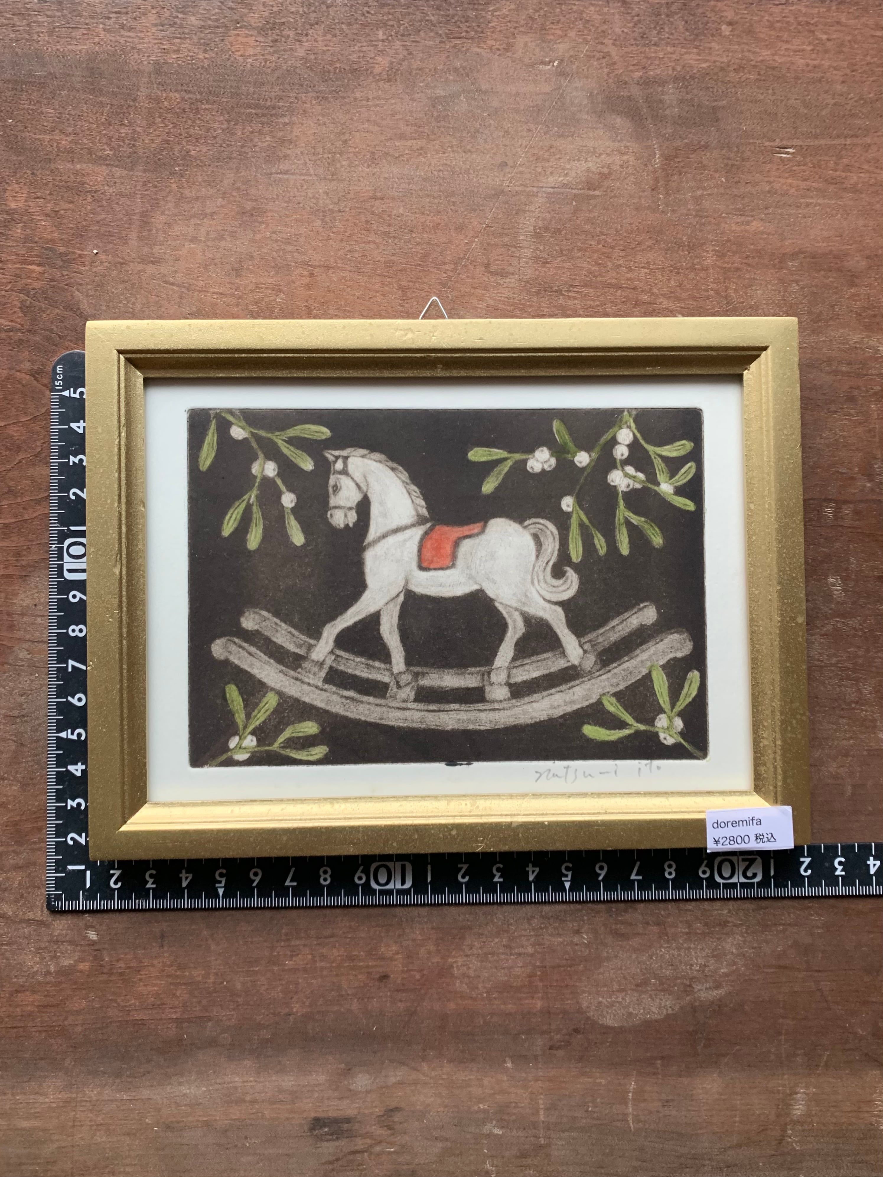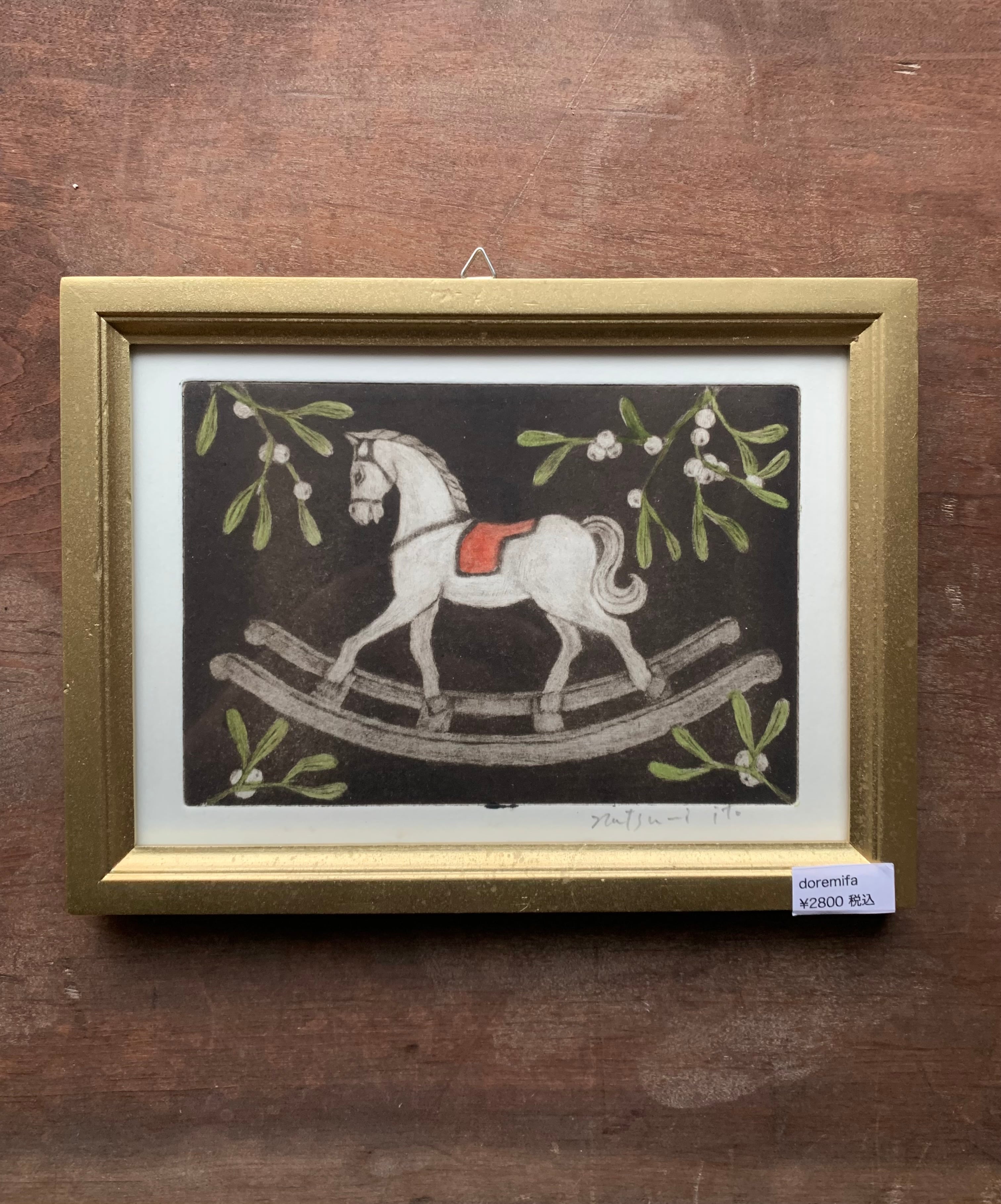 店主制作のメゾチント銅版画作品。ヤドリギをモチーフにした一枚です。メゾチントという技法で制作、プレス機で一枚一枚手刷りした後、着彩したアートピース。