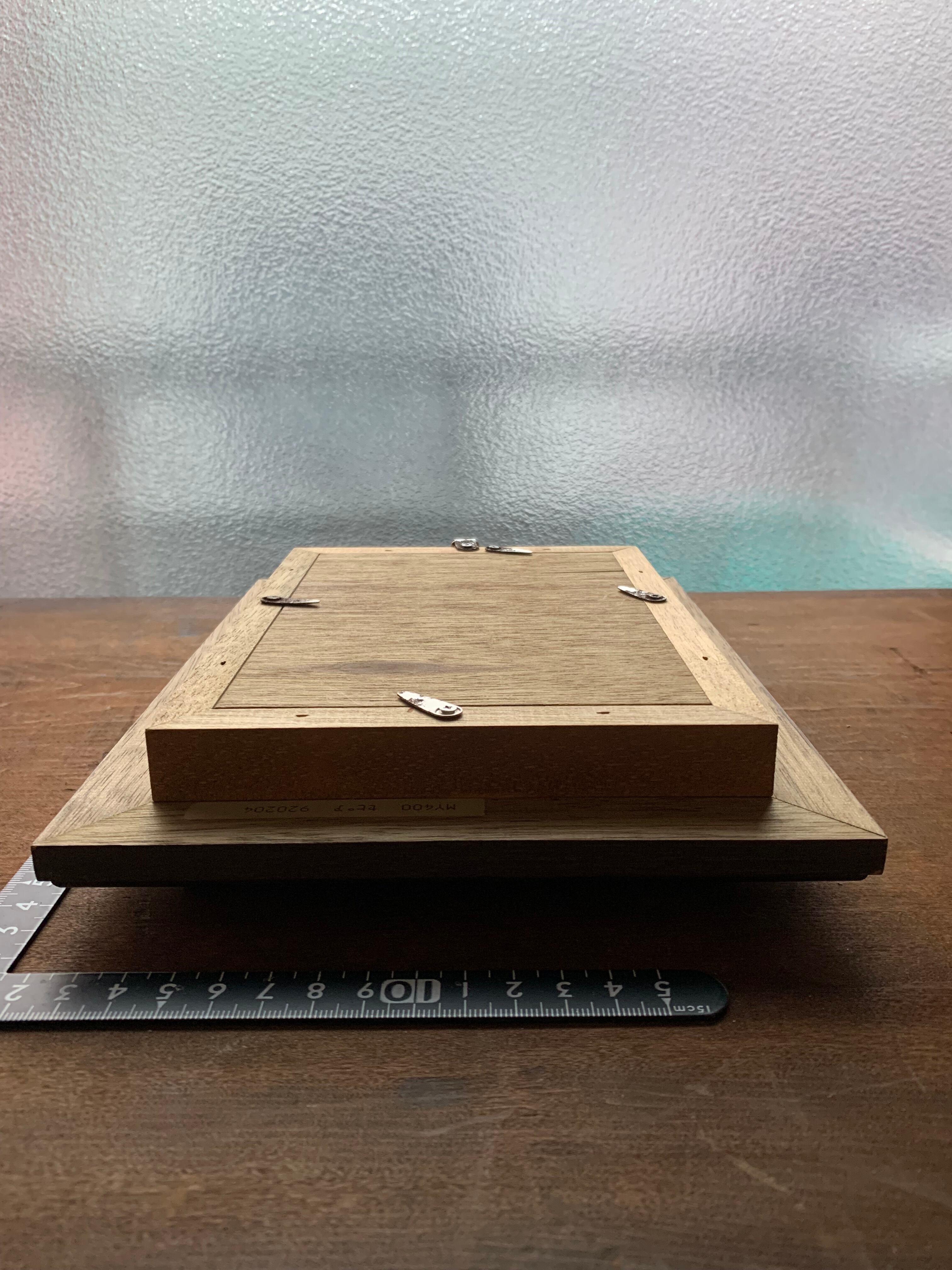 厚みのある重厚な木製フレームにガラス板。