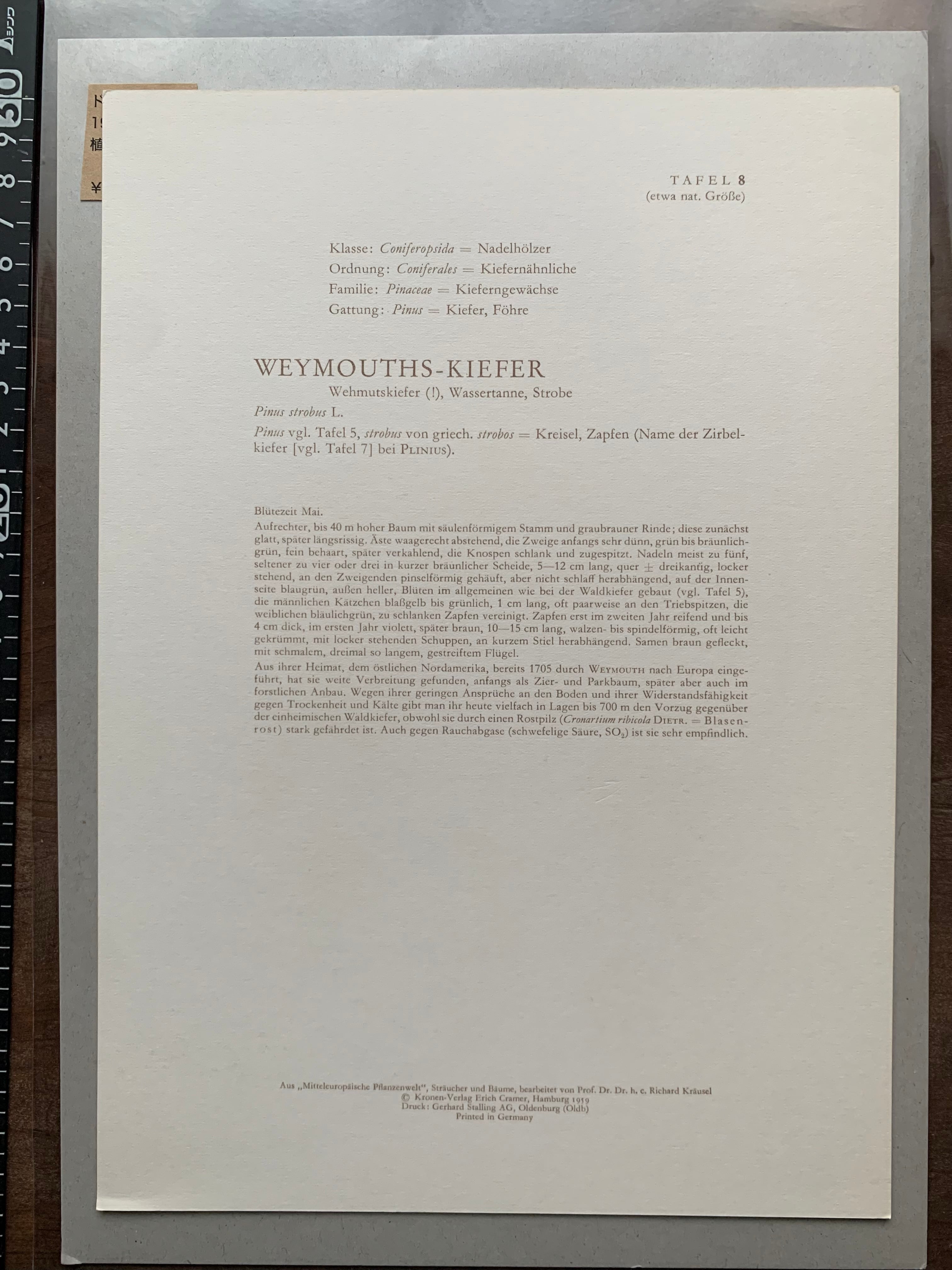 ドイツの古い植物図版、松ぼっくりの絵。色鮮やかで繊細な絵柄が特徴的、1958年頃のものです。