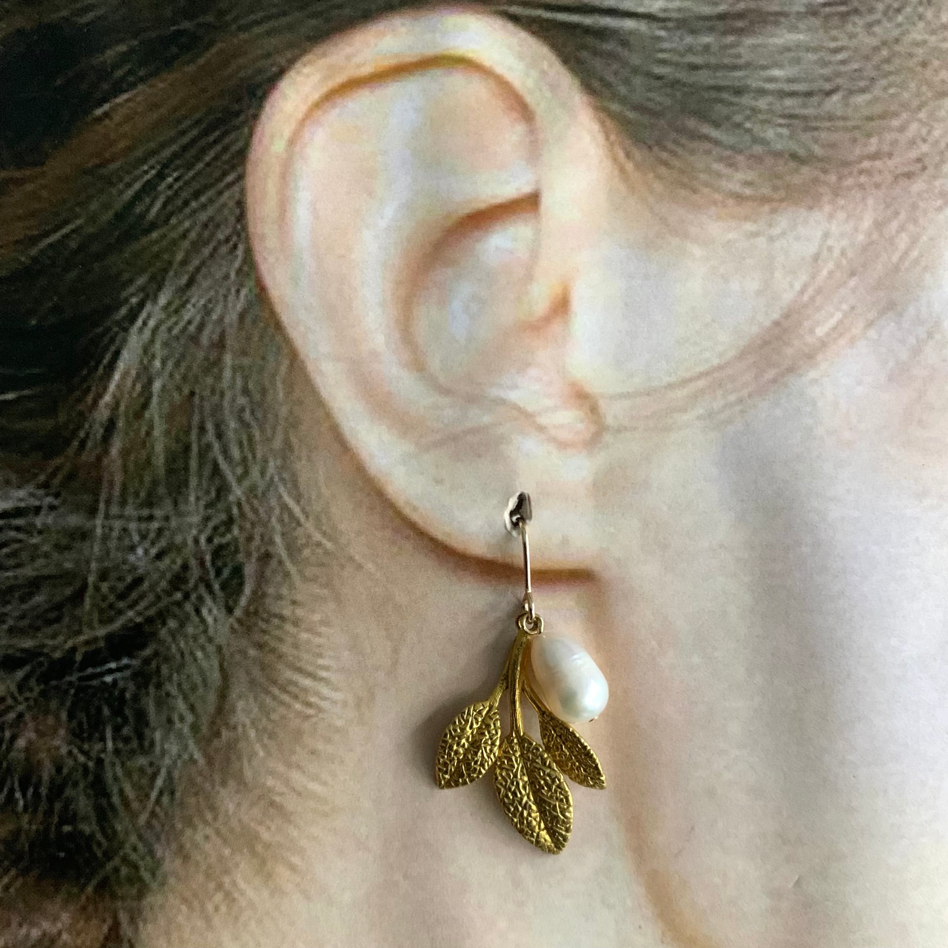 淡水パールと葉っぱのピアス